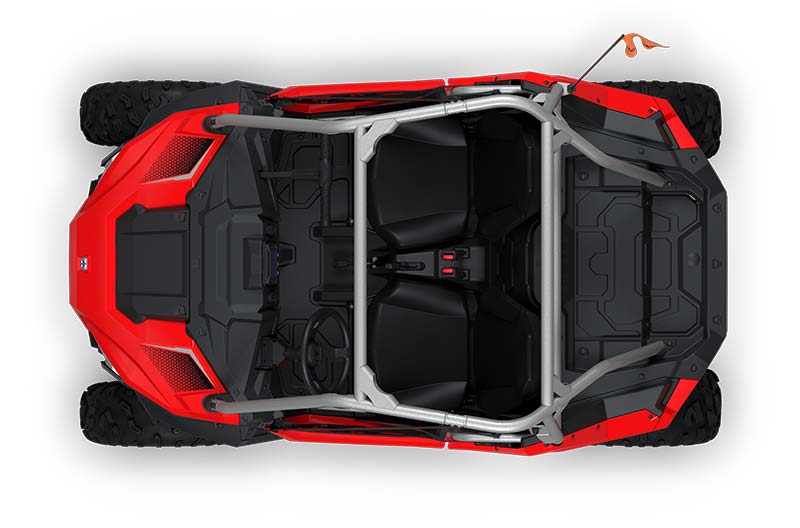 Sicherheitsgurt, Sicherheitsflagge, Sicherheitsnetze, vollständiger Überrollkäfig, kostenloses Online-Sicherheitstraining, Ride Control für Jugendliche (PIN-Start, Geschwindigkeitsbegrenzer, Geofencing)
